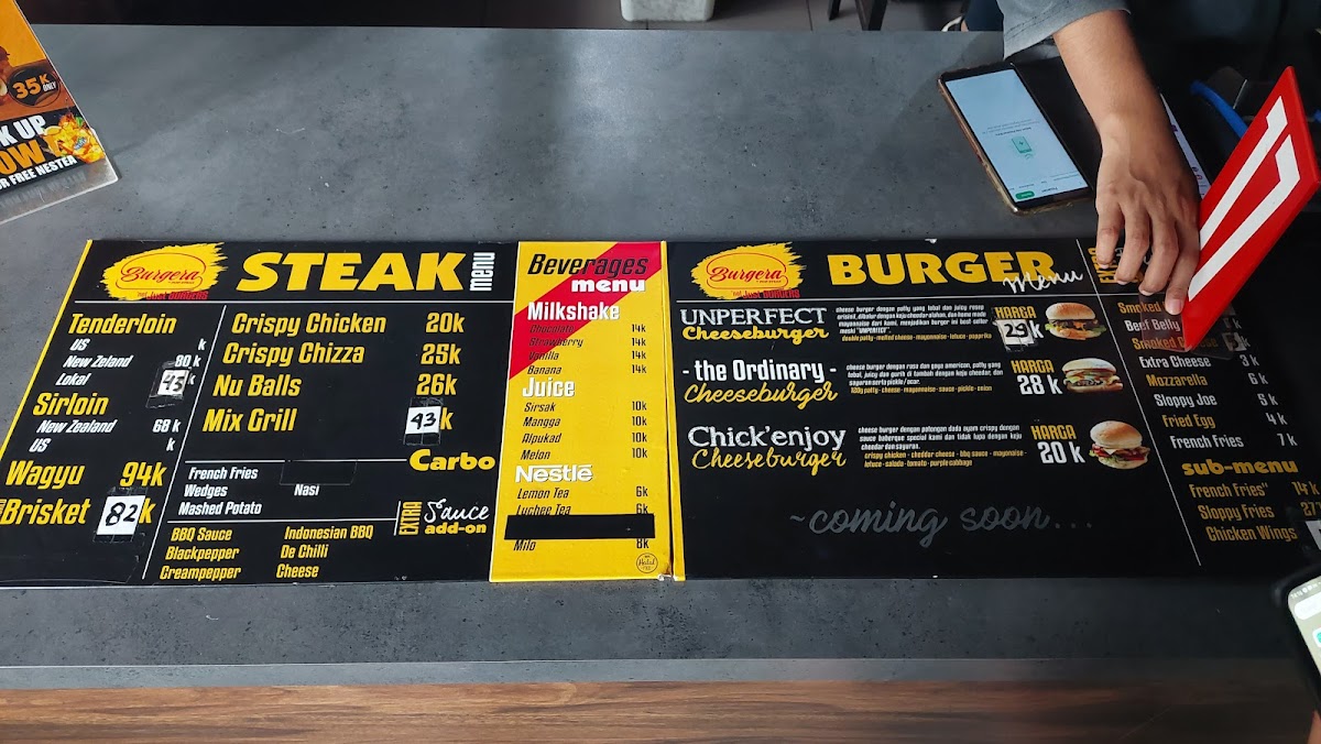 Welcome to Gera Burger, a gem tucked away in Balikpapan, East Kalimantan. This cozy hamburger restaurant, located on the third floor of the Pop Steak building, offers a delightful twist on burgers with local flavors. With affordable prices—like the tempting burger for just 27K plus an extra 5K for beef belly—it's no wonder patrons rave about the juicy, flavorful offerings.